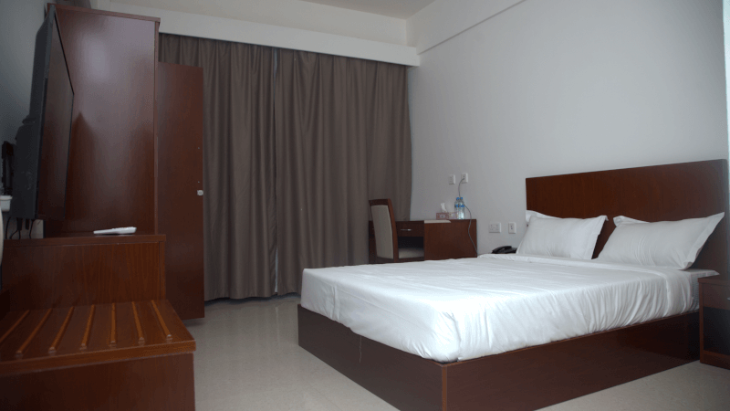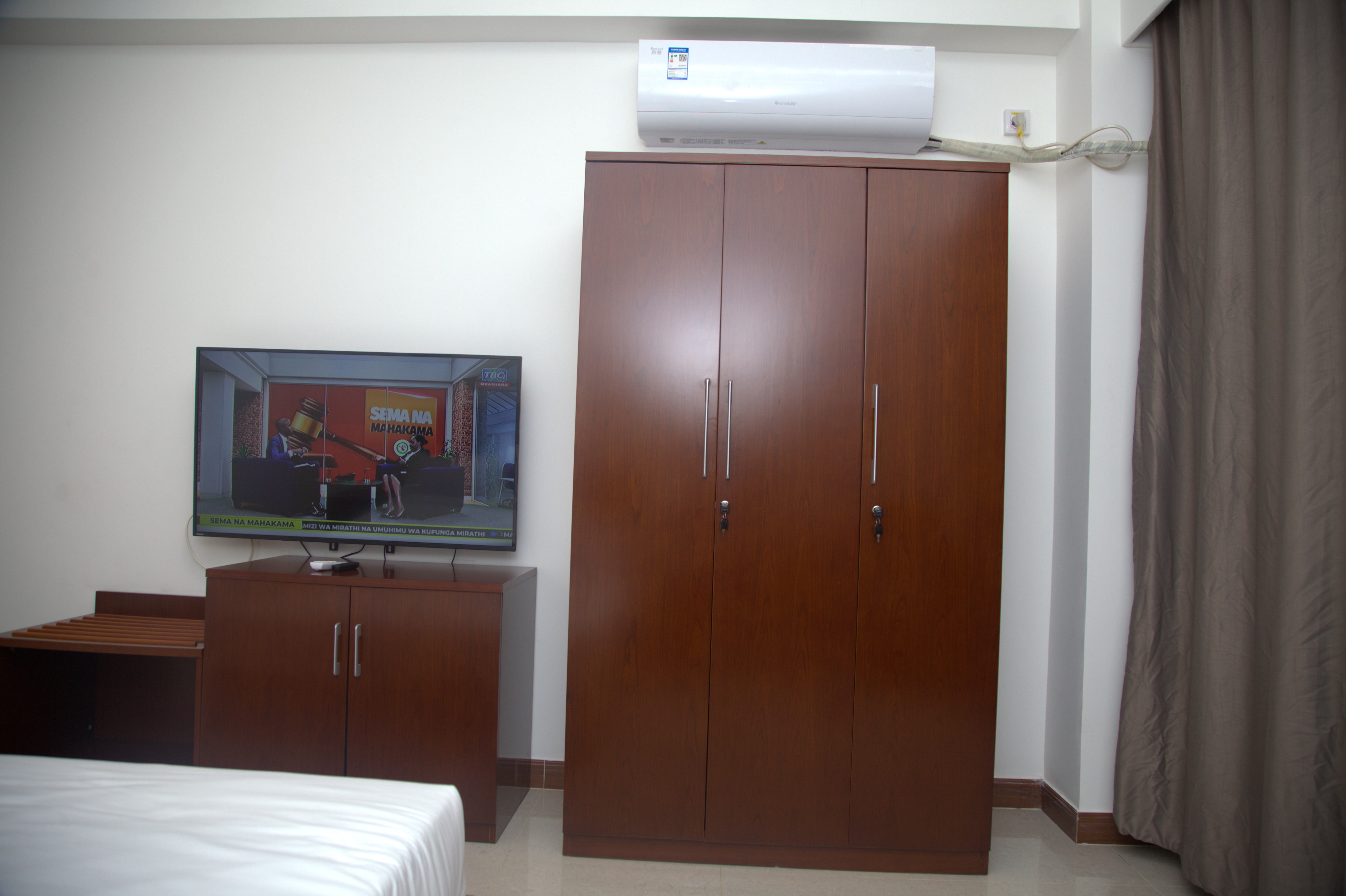 A standard self-contained room featuring a private bathroom, TV, wardrobe, table and chair, free Wi-Fi, and other amenities