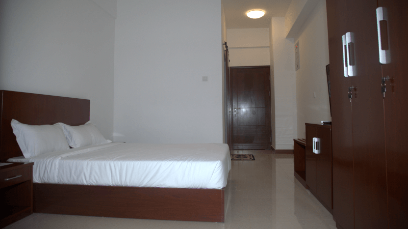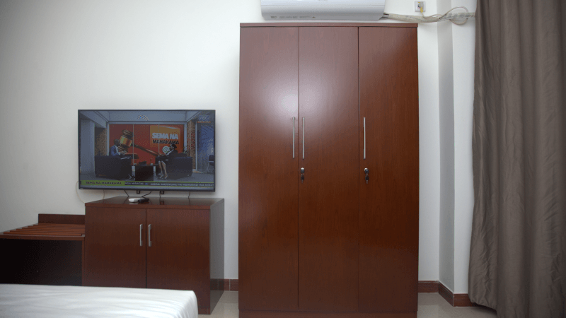 A standard self-contained room featuring a private bathroom, TV, wardrobe, table and chair, free Wi-Fi, and other amenities
